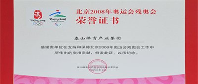第二十九届奥林匹克运动会组织委员会为星空集团颁发北京2008年奥运会残奥会荣誉证书